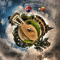 The photos depict “the planets of the Kragujevac galaxy” in 360 degrees panorama of various parts of the city. With every planet there is a short description which describes in a clever and witty way the planet’s inhabitants and their lifestyle, their features, their economic and social development, and of course, their relationship with other planets in the system. The whole idea of the exhibition is an attempt to give some old values a new look and a new meaning. As the purpose of every planet in our known universe is to rotate and to move, I have tried to bring our “little planets” to life. All 20 photos are placed on small platforms with electric motors of small consumption (20 V), and they are rotating around their axis, enabling the audience to effortlessly appreciate the whole concept.